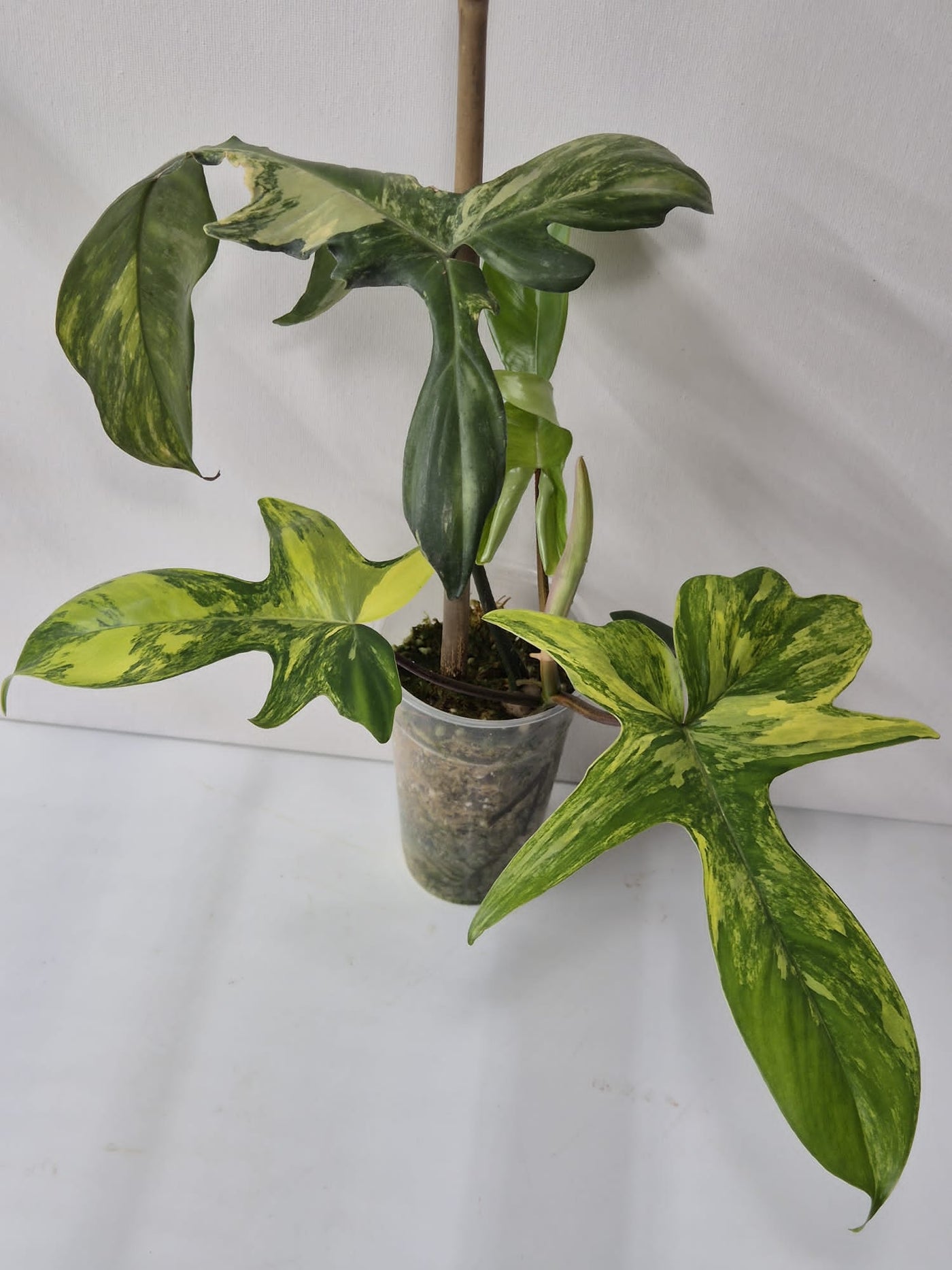 Die Philodendron Florida Beauty Variegata Kopfstecklinge überzeugen durch ihre eindrucksvollen grünen Blätter, die von hellen cremefarbenen bis gelblichen Variegata-Mustern durchzogen sind. Diese Sorte sorgt für ein tropisches Flair und setzt in jedem Raum ein elegantes Statement.